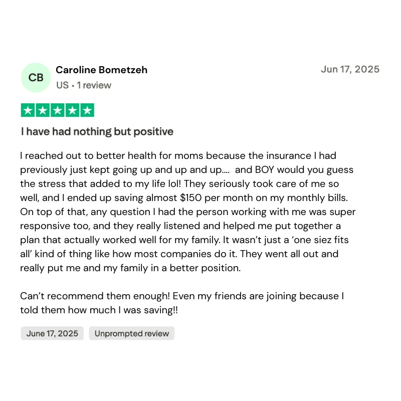 We partner with compassionate, transparent agencies that specialize in plans for women and moms. This means offering better coverage, lower rates, and the security every mother deserves for herself and her family.